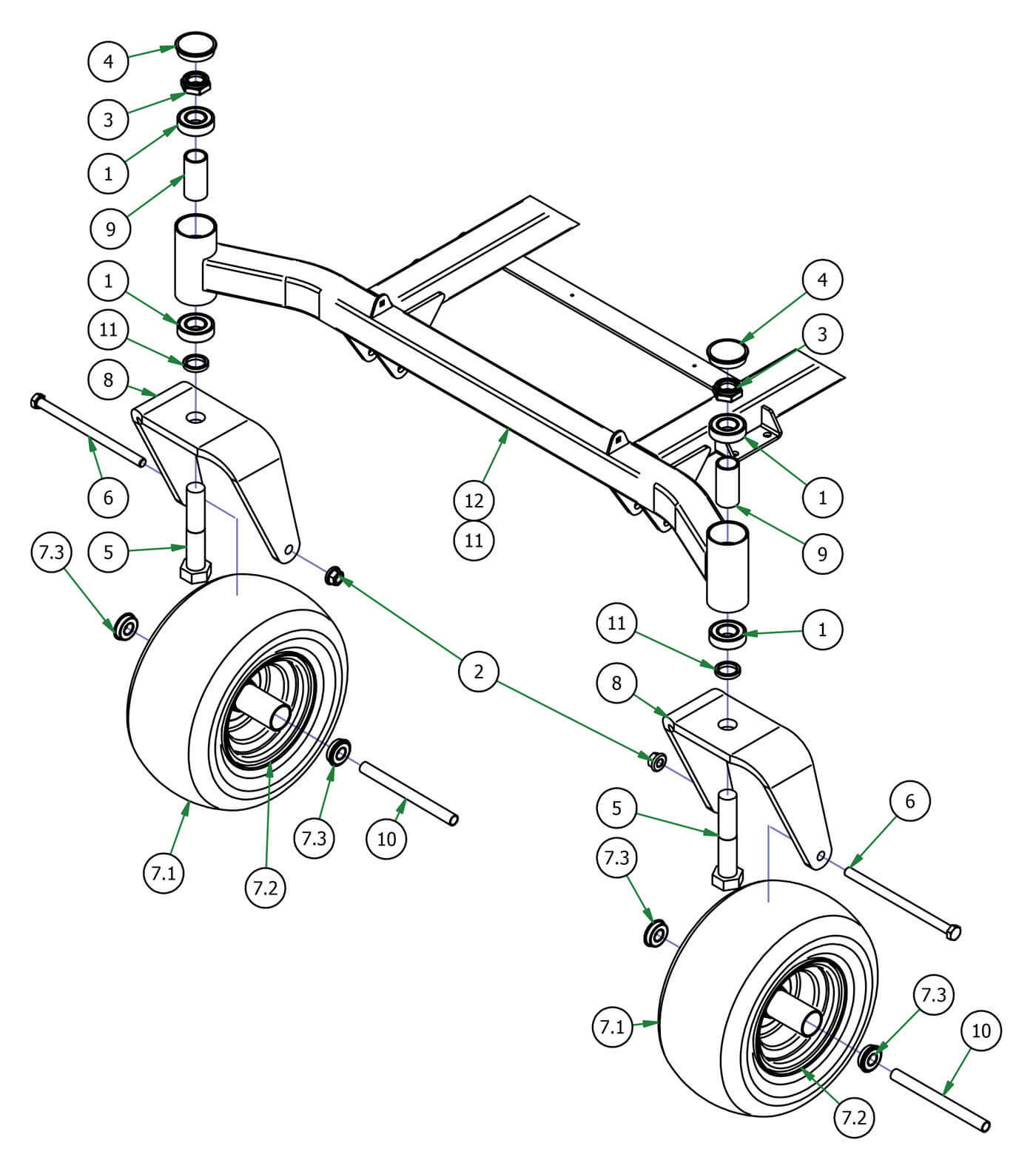 - 1 Caster Bearing (Qty 4)